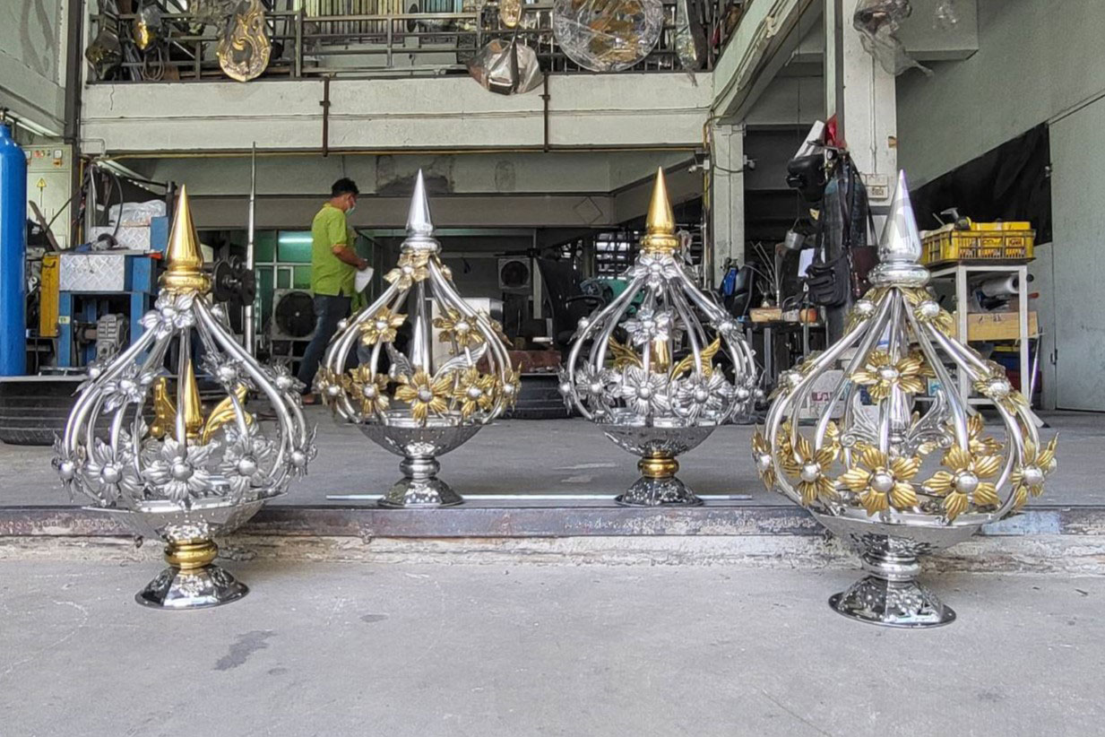 บริการงานผลิตโครงสร้างสถาปัตยกรรมสแตนเลส งานสแตนเลสเจดีย์ ยอดเจดีย์สแตนเลส ฉัตรสแตนเลส ซุ้มประตูวัด ซุ้มประตูโบสถ์ งานโบสถ์สแตนเลส ราวบันได สแตนเลส บริการงานทั่วประเทศ